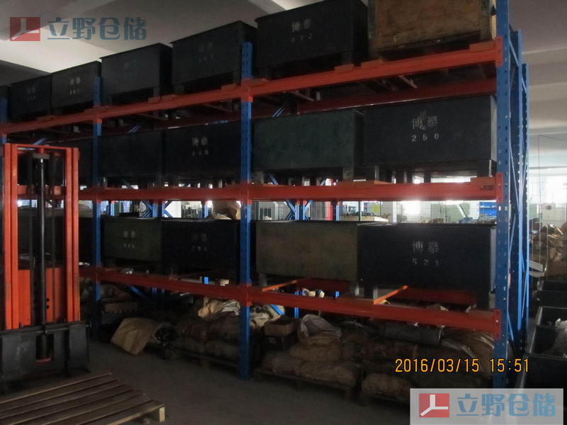 ■通常貨物通過托盤、倉儲籠等單元集裝設備整裝后存入貨架存儲。每單元載重一般在1000kg-4000kg以內,采用叉車或者堆高車來進行作業的形式。